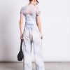 Our mesh T-shirt EVIE has a tight fit and can be worn with your favorite bralette or a simple tight-strapped top underneath. EVIE will be your loyal companion for the upcoming festivals. We have styled it with a white top underneath, but any other bralette or top will do the job too.By the way, have you ever seen a recycled mesh top before? Our mesh material is made from recycled plastic bottles. Convinced?