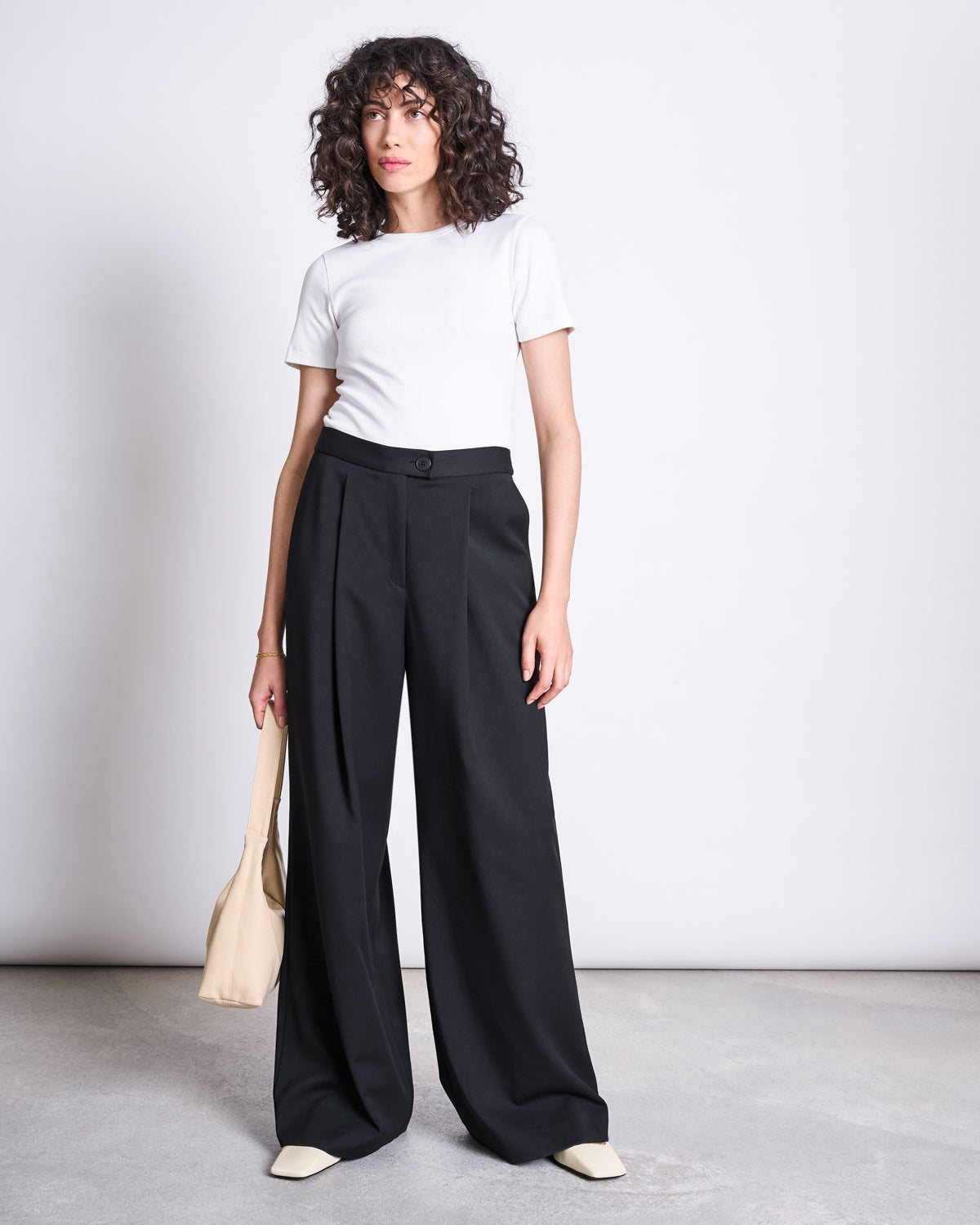Finally – you’ve found the perfect wide pants. Congratulations. Our new pants GIZA comes with a wide fit, a high waist and a long cut for the ulitimate perfect wide pants look. The pants feature two pockets in the front.The mix of 68% recycled polyester, 29% EcoVero™ and 3% elastane makes it super comfy, but also gives it a firm handle.